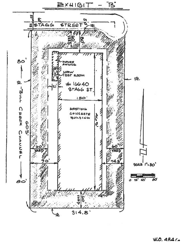 NOTE: The 60 foot wide yards to be maintained for an oversized building for the above described parcel of land are depicted in EXHIBIT B attached hereto.